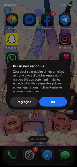 Jag slog på den och konfigurerade den, säljaren bytte ut skärmen, batteriet och kameralinsen, jag fick reservdelskonfigurationsmeddelandet från Apple, de kunde ha gjort detta innan de lade ut det till försäljning.